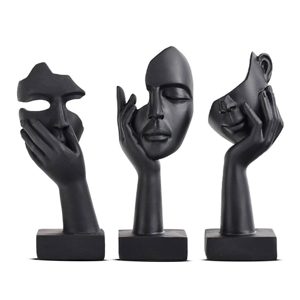 Black Woman Face Statue 3-Piece Set – Modern Home Decor