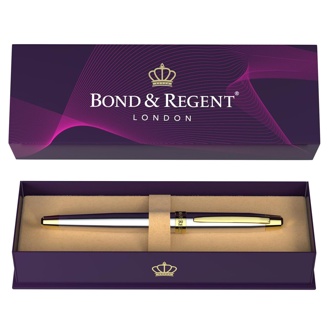 Bond & Regent Silver Chrome & 24K Gold Luxury Rollerball Pen