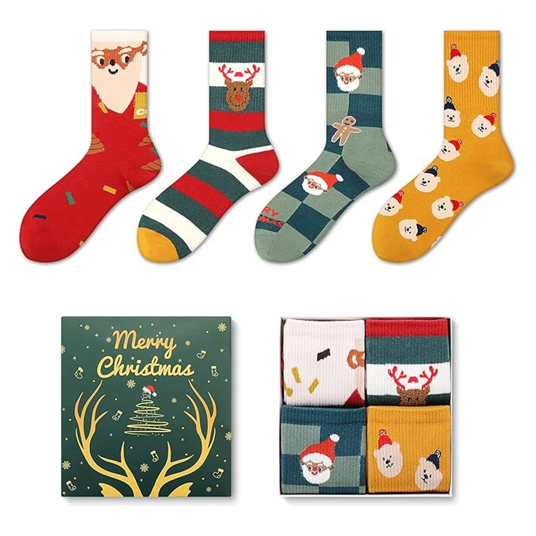 Great Value Gift Set: Get 4 pairs of high-quality Christmas socks in one pack! Mix and match styles for a fun holiday look or share them with family and friends.