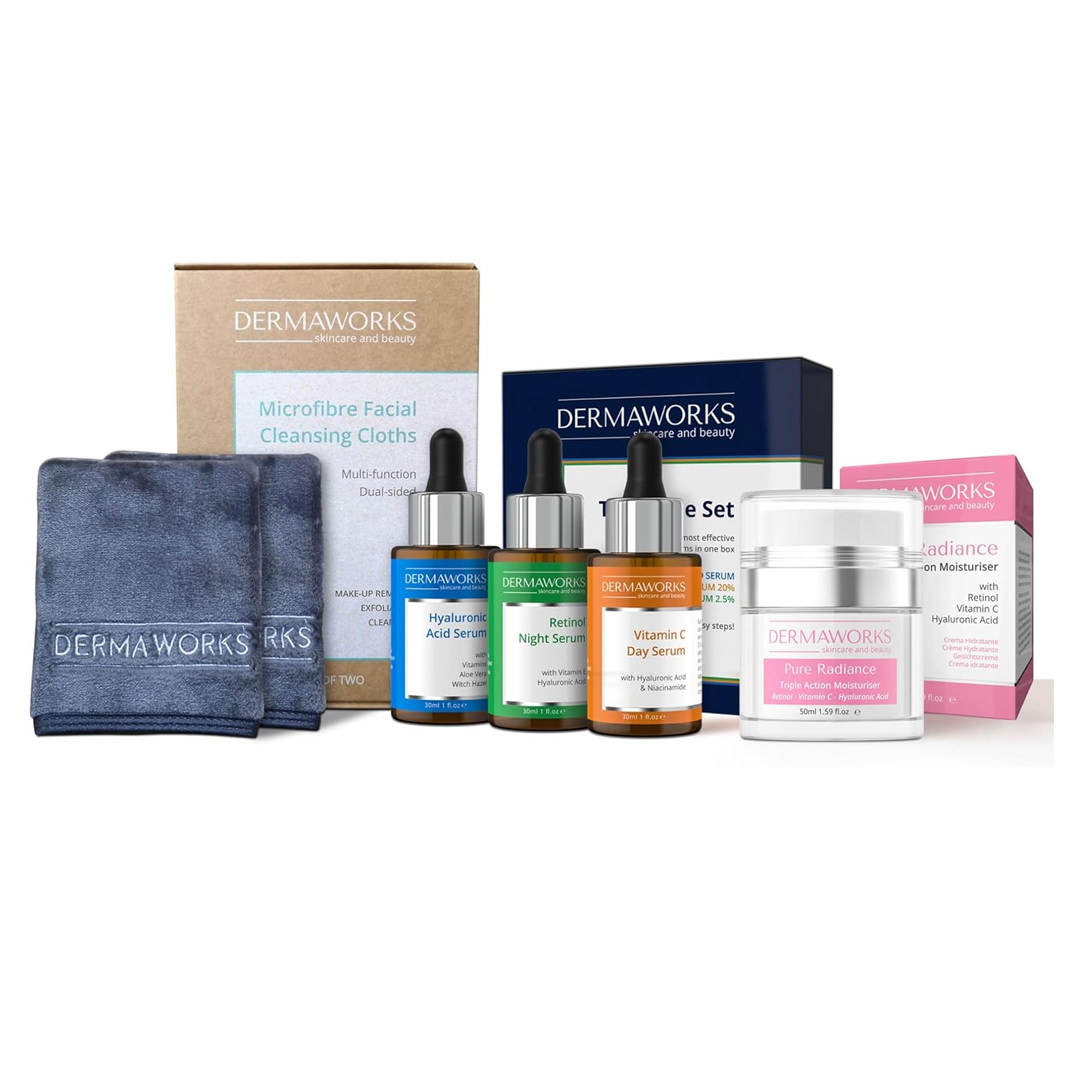 DERMAWORKS Skincare Gift Set for Women – Face Cream & 3 Serums