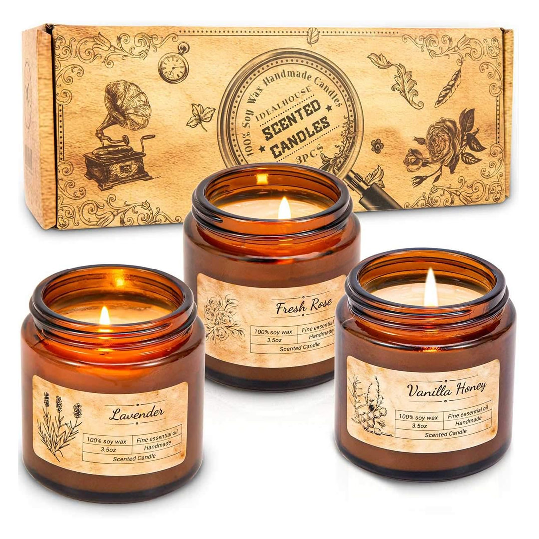 IDEALHOUSE Scented Soy Candle Gift Set – Vanilla, Rose & Lavender