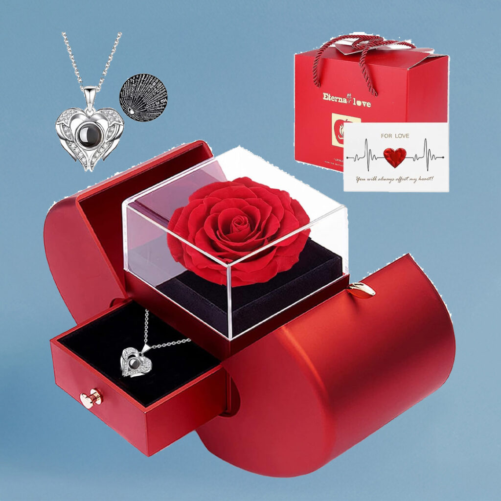 Firestyle Preserved Rose with “I Love You” Necklace – Eternal Flower Gift for Her