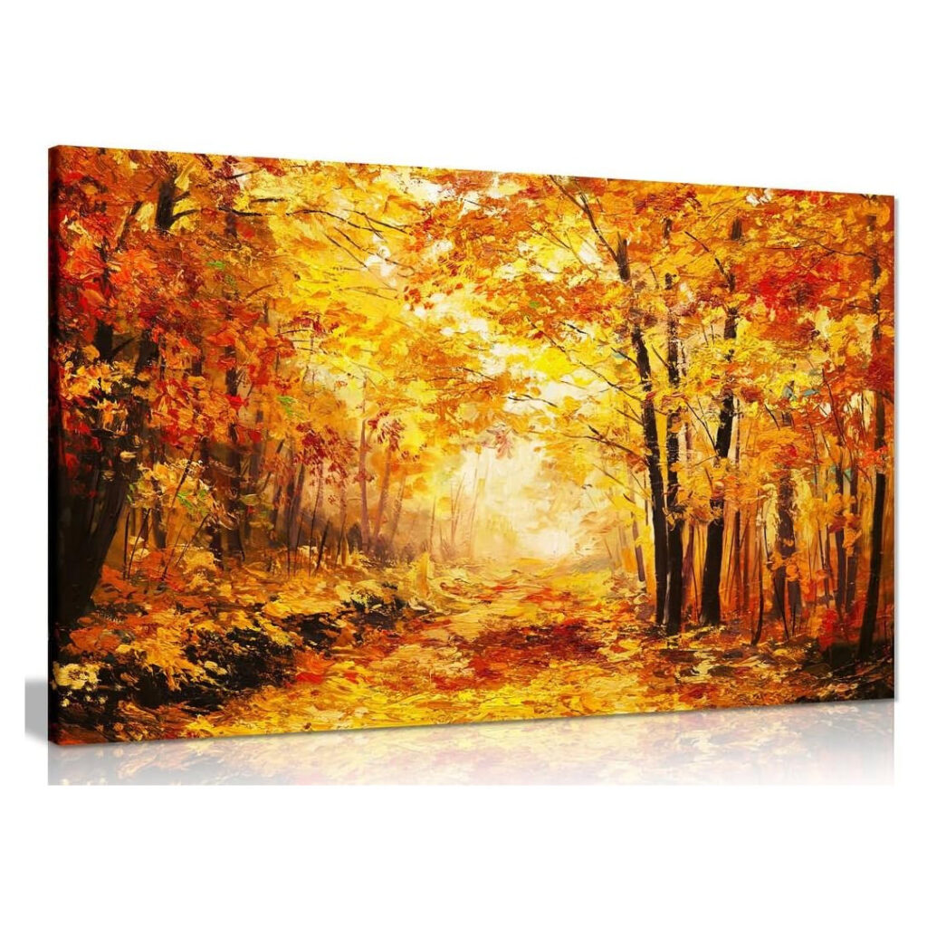 Abstract Autumn Forest Oil Painting Canvas – 24x16in Wall Art