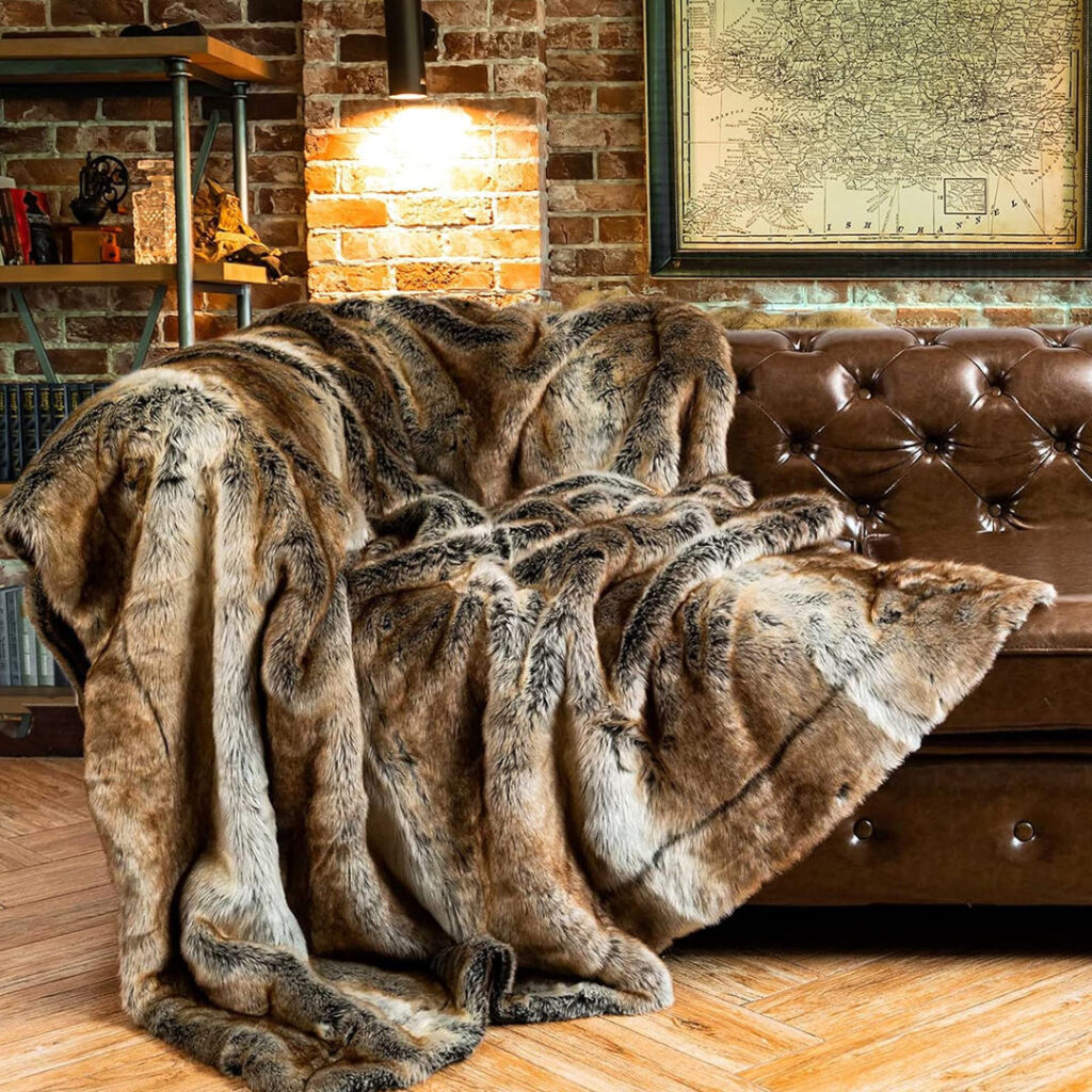 BATTILO HOME Brown Faux Fur Throw Blanket – 125x150cm Cozy & Luxury