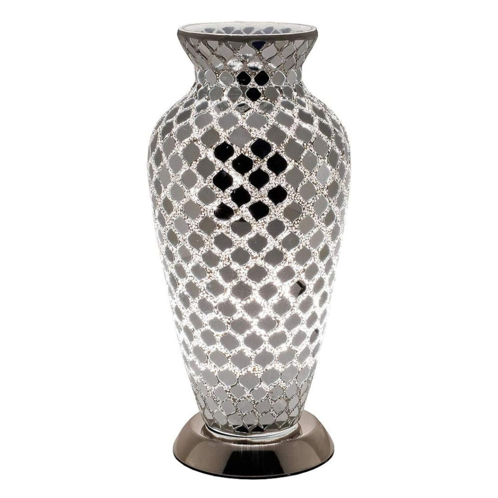 Britalia LED Silver Mosaic Glass Vase Table Lamp – 38cm, Warm White